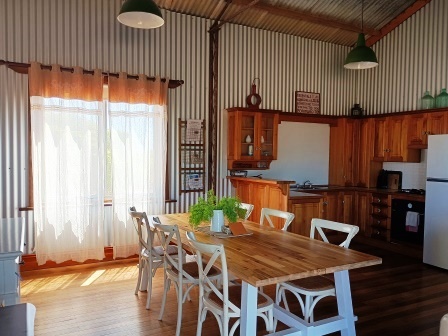 It comprises a kitchen, dining and lounge area with slow combustion heater.